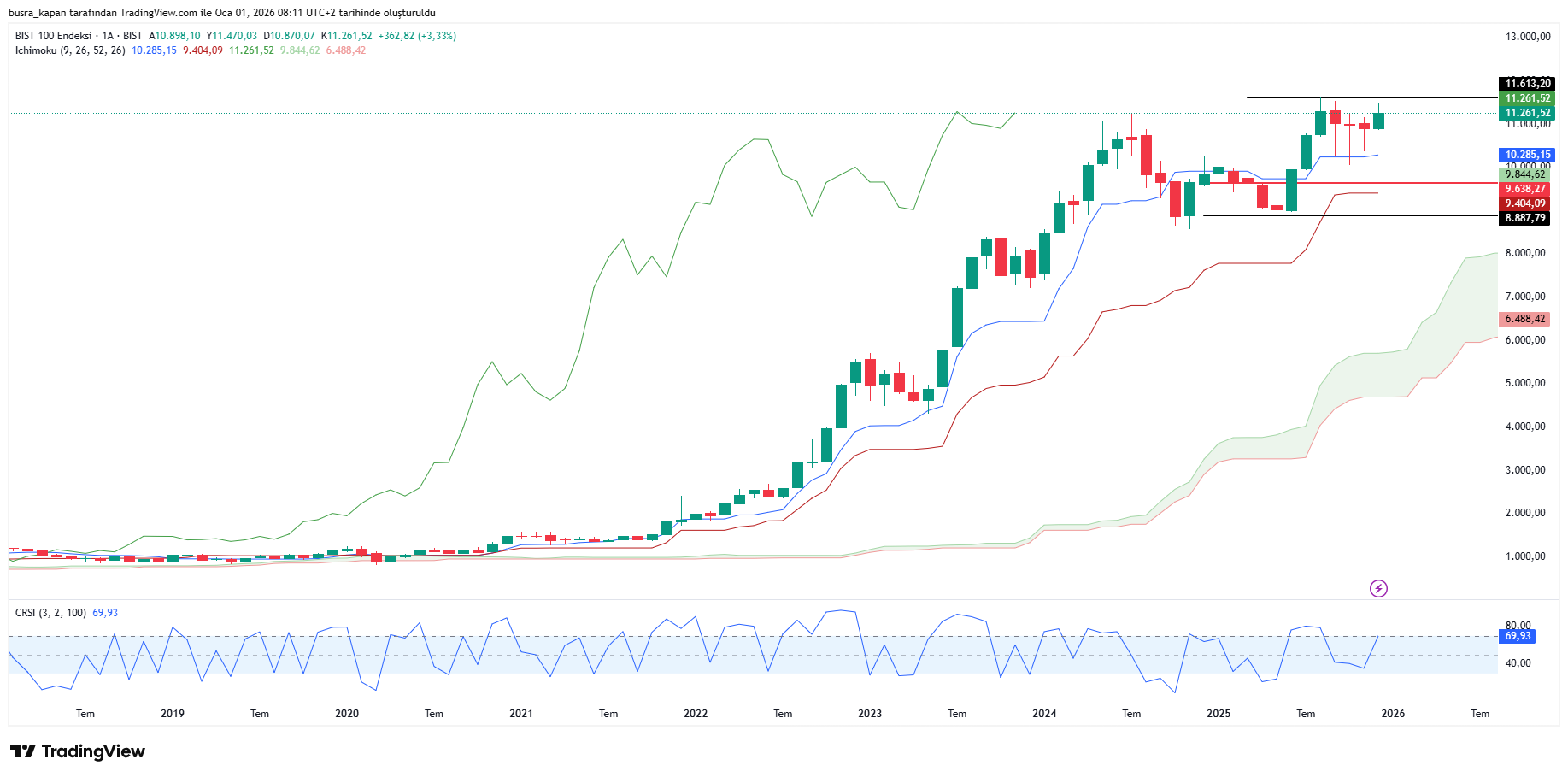 Borsa, yıl başında 9,844 puandan işlem görerek 11,613 puana yükseldi, ancak mart ayında 8,887 puana kadar gerileyerek büyük kayıplar yaşadı.